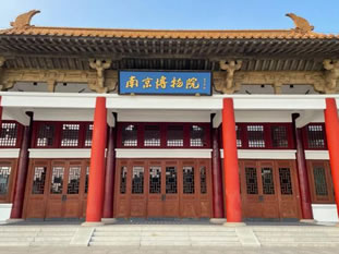 建國50年來,首先把原中央博物院留下的建筑未了工程,修繕而裝飾一新,屋頂鋪蓋金黃色琉璃瓦,添砌仿漢闕大門,修筑庭前馬路,綠化周圍環(huán)境,興建大殿前的月臺(tái)。門前面向通往東郊明孝陵和中山陵的林蔭大道,滬寧高速公路經(jīng)門口穿過而進(jìn)入市內(nèi)繁華地區(qū);門內(nèi)庭園廣闊,花木蔥蔥似錦,襯托出仿遼式宮殿建筑的陳列大殿的端嚴(yán)和壯觀。