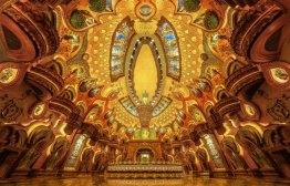 作為佛頂圣境區(qū)的核心之一,佛頂宮坐落于牛首山西峰之處,建基于歷史遺留礦坑之上,總建筑面積約13.6萬(wàn)平方米,與佛頂塔共同構(gòu)成牛首西峰新景象,與牛首東峰遙相呼應(yīng),再現(xiàn)牛首“雙峰雙闕”并峙的宏偉盛景。整個(gè)佛頂宮以佛祖頂骨舍利供奉為主題,外部分為大穹頂和小穹頂兩個(gè)部分,寓意外供養(yǎng)和內(nèi)供養(yǎng)。大穹頂形如佛祖袈裟覆蓋在小穹頂之上,象征著佛祖的無(wú)量加持;小穹頂下部為蓮花寶座造型,上部為摩尼寶珠造型,上下結(jié)合形成“蓮花托珍寶”的神圣意象。