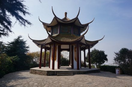 碧云亭位于虎山之巔,又名“望江亭”,平頂崗巒貌似半島,向北伸出,三面均是懸?guī)r,僅一石與山道相連,構(gòu)成別具一格,是以險(xiǎn)取勝的景點(diǎn)。其東側(cè)深谷陡壁,巖石裸露,峻峭無比,西側(cè),由松濤林海鋪成的起伏崗巒,向北眺望,長江盡收眼底。