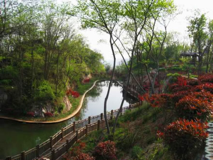 紅葉谷位于御花園和鳳翔峰西南山腰的交界處,由于這里長年無人涉及,加上山水的沖刷,于是巖石裸露處盡顯崖溶奇石景觀,其余則為茂密的叢林和濕地,特有的氣候環(huán)境,使這里奇石嶙峋、古楓矗立、古藤纏繞。該景點(diǎn)的建設(shè)充分考慮倒地貌、水體、植物、設(shè)施等的和諧搭配,注重棲霞山的生態(tài)功能的修復(fù),不斷美化、優(yōu)化、彩化環(huán)境,并引水造池,改善該區(qū)域的生態(tài)環(huán)境。紅葉谷占地約5萬平方米,景區(qū)自然風(fēng)貌優(yōu)美,以奇石、紅葉為特點(diǎn),是集山、石、水、林、亭為一體新的紅葉觀賞區(qū)。