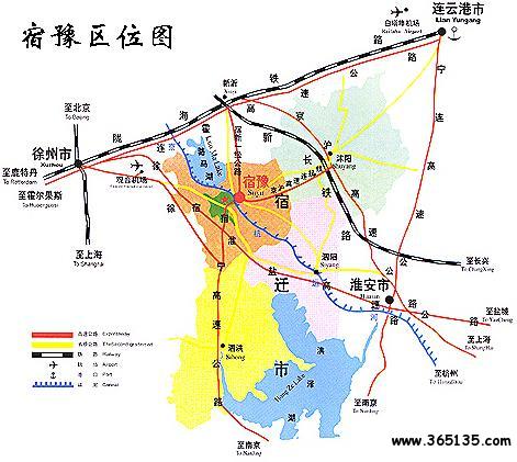 宿豫區(qū)環(huán)抱宿遷市,與徐州、連云港、淮安三市相距均在100公里左右,水陸空交通便捷。公路方面:寧宿徐、徐宿淮鹽、宿新(在建)等兩條高速公路和宿新、宿沭兩條一級(jí)公路穿境而過,東距京滬高速公路55公里,距南京260公里,離上海380公里。鐵路方面:北距隴海鐵路新沂站、東離新長(zhǎng)鐵路沭陽站均在50公里左右,淮(安)宿(遷)宿(州)鐵路(在建中)。水運(yùn)方面:黃金水道京杭大運(yùn)河縱貫?zāi)媳,東距連云港港口120公里?者\(yùn)方面:西距徐州觀音機(jī)場(chǎng)60公里,北到連云港白塔埠機(jī)場(chǎng)110公里。
