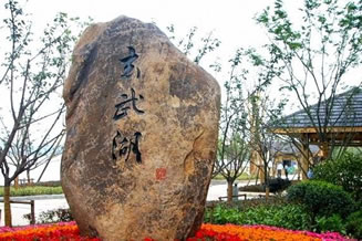 郭璞墩位于環(huán)洲西端。存石亭一座,仙墩置石一塊。是玄武湖地勢最高處。郭璞墩為東晉著名文學(xué)家、科學(xué)家郭璞的衣冠冢。郭璞景區(qū)建設(shè)以東晉時期為歷史背景,體現(xiàn)六朝風(fēng)格,沿軸線建設(shè)了郭璞雕像、不老門、等景觀,彰顯郭璞仙墩古樸隆重之氣。