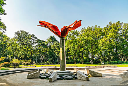 月季園位于環(huán)洲東端,占地約7200平方米。栽植月季5000多株,200多個品種,有樹狀月季、藤本月季、大花月季、微型月季等種類,是南京市著名的月季專類園。月季園中央挺立著的一棵200年樹齡的銀杏,是南京市保護的古樹名木之一。