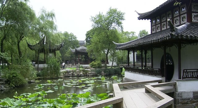 拙政園位于蘇州市婁門東北街178號(hào),占地60畝,是一座始建于公元十五世紀(jì)初的古典園林,是江南古典園林的代表。晉代文人潘岳《閑居賦》中有“灌園鬻蔬,以供朝夕之膳,是亦拙者之為政”之句,拙政園即取其之意而命名。經(jīng)過(guò)幾百年的蒼桑變遷,現(xiàn)存建筑大多為太平天國(guó)及其后修建,但明清舊制大體尚在,拙政園仍保持著平淡疏朗、曠遠(yuǎn)明瑟的明代風(fēng)格,被譽(yù)為“中國(guó)私家園林之最”。