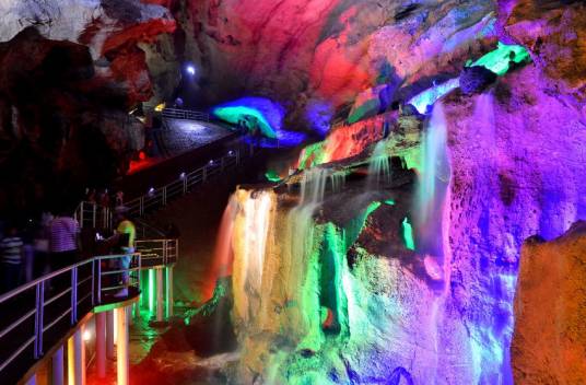 洞內(nèi)常年恒溫18度冬暖夏涼。洞內(nèi)景點(diǎn)多達(dá)一百余個(gè),如:天堂大廳、童子拜觀音、千丘梯田、倒柳垂楊、許愿池、回龍廳等。最為壯觀的是洞內(nèi)的洞天飛瀑,它高九米寬七米,天然瀑布水從九米高的上空直奔洞池,濺起無數(shù)水花,聲勢(shì)浩大聲撼震天,為此洞一絕。清風(fēng)、怪石、流泉、飛瀑被稱為“洞中四絕”。