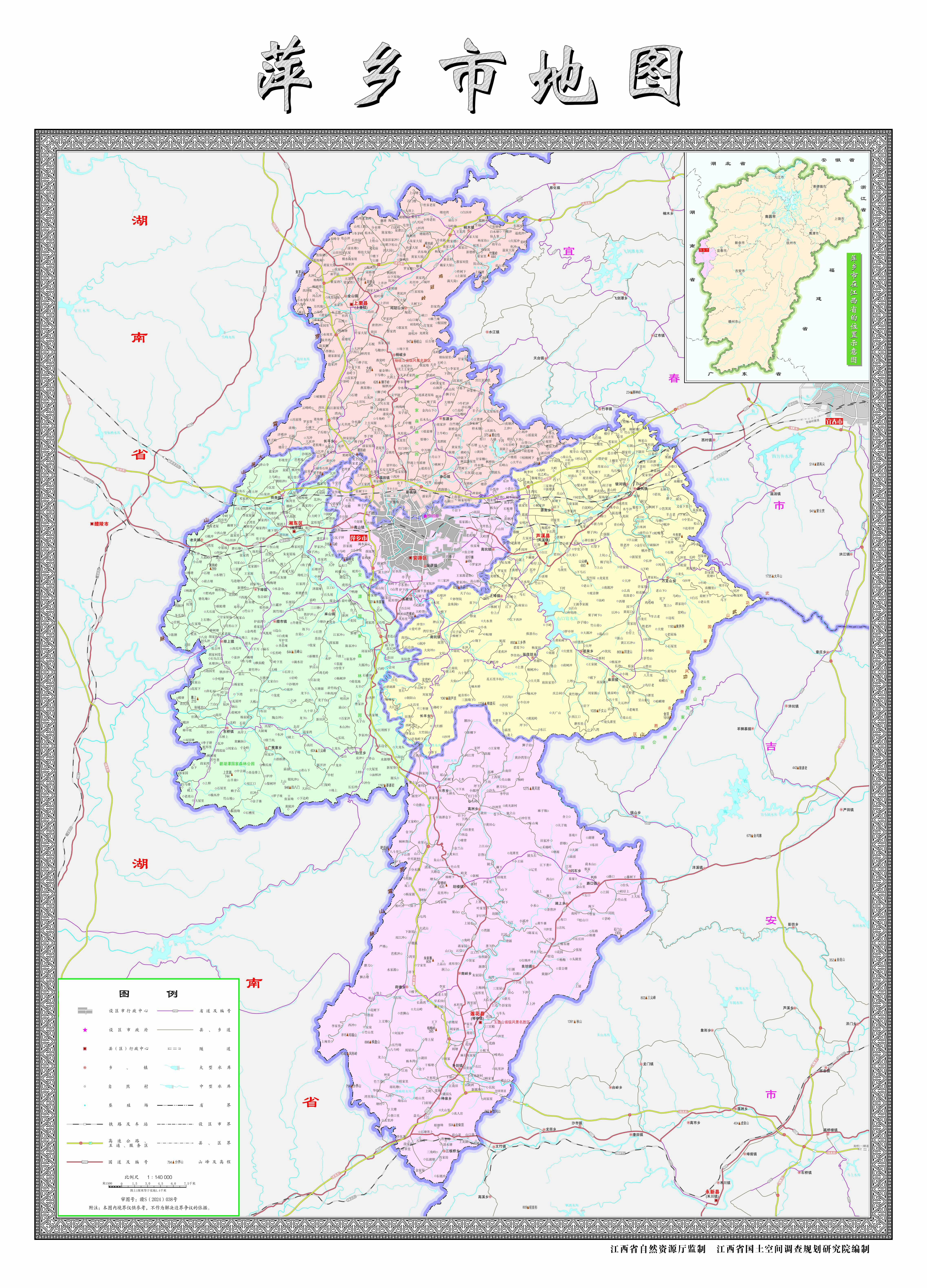 萍鄉(xiāng)市轄2個(gè)市轄區(qū),3個(gè)縣: