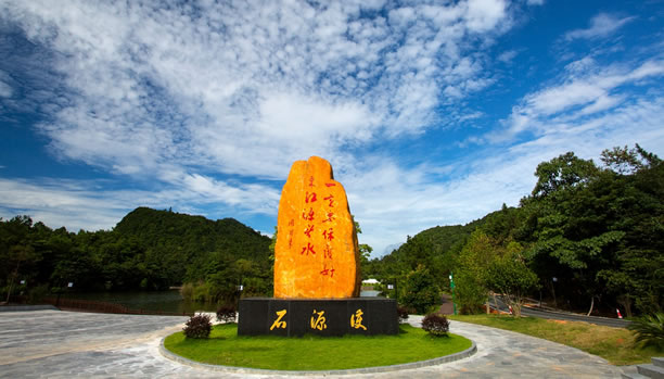 護源石是2017年紀念香港回歸20周年時所立,石碑上“一定要保護好東江源頭水”為周恩來總理的親筆題詞。1963年,香港遭遇了60多年來最嚴重的一次干旱,350萬人的生活因缺水陷入困境。當(dāng)年12月,周恩來總理親自批示,撥專款用了11個月的時間在深圳建成了東深供水工程,把東江的水引到香港,從此結(jié)束了香港長期缺水的歷史。護源石形狀像一只手掌,寓意用手護源,石頭高5.23米,與東江流域長度523公里相對應(yīng),寬3米,代表贛、粵、港三地;護源石底座長4.65米,與三百山到香港的距離465公里相對應(yīng);花壇采用圓形,寓意“圓圓滿滿”。