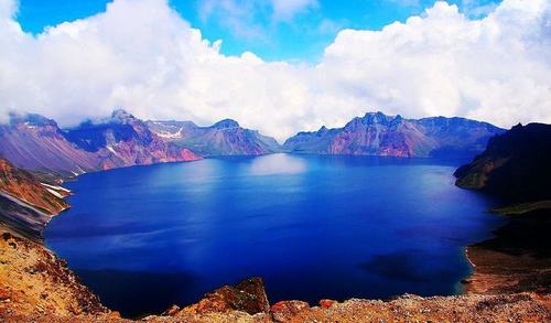 長白山天池,又稱白頭山天池,坐落在吉林省東南部長白山自然保護(hù)區(qū)內(nèi),是中國和朝鮮的界湖,雙方各擁有一部分水域。天池南北長約4400米,東西寬約3370米,其池水的海拔高度為2189.1米,最深處為373米,平均204米,水面面積9.82平方千米,周長13.1千米。據(jù)《長白山江岡志略》記載:“天池在長白山巔的中心點(diǎn),群峰環(huán)抱,離地高約20余里,故名為天池。”