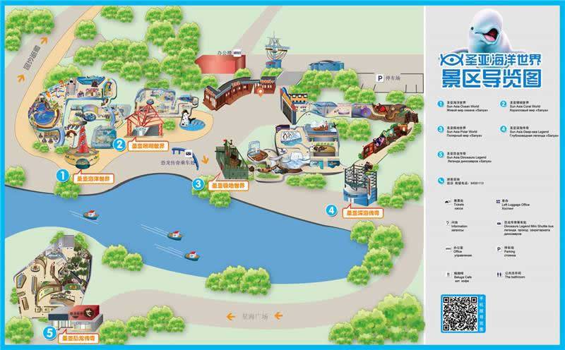 極地大本營→檢票口→海豹灣(旺季有小型表演及游客互動)→極地飛船→白鯨水下表演場(《白鯨傳奇》)表演→北極動物村(北極狼、中國最大北極熊、北極狐)→南極企鵝島(中國最大南極企鵝基地)→海豹投喂區(qū)→觀海平臺(餐飲、休閑區(qū))→《功夫海象》表演場→出口