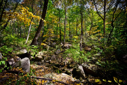這里有鴿子洞、神龜出潭、海獅入水、白龍?zhí)镀俨肌埵咨?比丘洞)、仙人臺(tái)、小偏橋和石棚山(三塊石主峰)等景點(diǎn),能欣賞到國(guó)家珍稀瀕危木蘭科植物-天女木蘭。