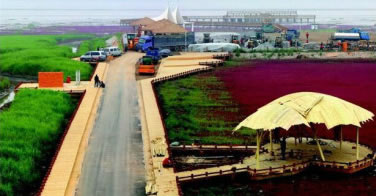紅海灘四月初為嫩紅,漸次轉(zhuǎn)深,十月由紅變紫,最佳觀賞時(shí)間為五月至十月。這里魚肥蟹美,稻米飄香,海鷗與抽油機(jī)為伴,紅海灘與丹頂鶴相映,現(xiàn)代文明與原生文明共生。它以舉世罕見的紅海灘為特色,以全球保存最完好、規(guī)模最大的濕地資源為依托,以世界最大的蘆葦蕩為背景,與數(shù)以萬計(jì)的珍稀水禽和一望無際的淺海灘涂構(gòu)成了一條生態(tài)風(fēng)景廊道。它左側(cè)是旖旎延綿的紅海灘,右側(cè)是一望無際的蘆葦蕩。在春夏時(shí)節(jié),它們紅綠相濟(jì);在秋冬時(shí)節(jié),它們金紅相映,一路貫通。
