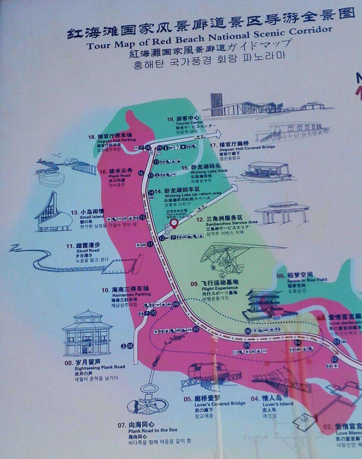 盤錦南—305國(guó)道—紅海灘大街—旅游路—新榮線—建海路—廊道三角洲大門
