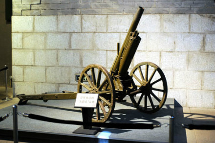 日本九四式山炮:1945年日本其中的戰(zhàn)敗后,其武器、軍備被中國(guó)軍繳獲,其中包括一批九四式山炮。 文革后,一門(mén)九四式山炮幾經(jīng)輾轉(zhuǎn),到了沈陽(yáng)軍區(qū)一分部吉林敦化分庫(kù)的軍需倉(cāng)庫(kù)。1997年12月4日,“九一八”事變紀(jì)念館擴(kuò)建辦公室到吉林敦化征集到該山炮及專用炮嘴。1999年9月18日,該九四式山炮及專用炮嘴由“九一八”歷史博物館收藏。