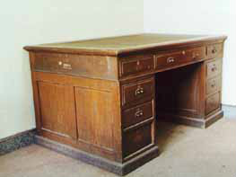北野政次使用過(guò)的辦公桌、椅子、書(shū)架:北野政次曾用名北野政藏,日本人。日本東京帝國(guó)大學(xué)畢業(yè),獲醫(yī)學(xué)博士。這一套桌、椅及書(shū)架是當(dāng)時(shí)北野政次在“滿洲醫(yī)科大學(xué)”時(shí)使用的“辦公用品”,是由中國(guó)醫(yī)科大學(xué)于1997年捐贈(zèng)給該館的。