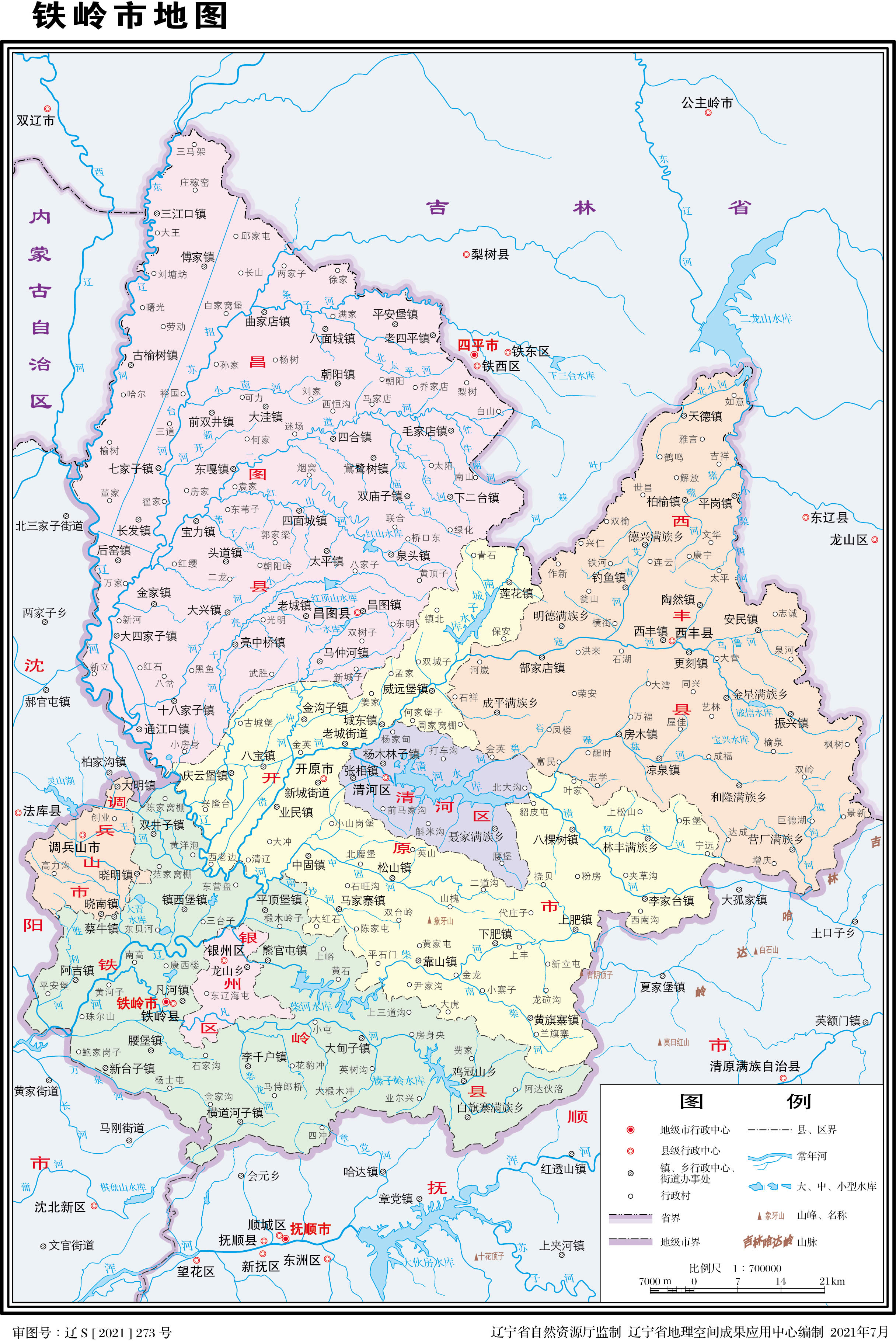 鐵嶺市轄2個(gè)市轄區(qū)、3個(gè)縣,代管2個(gè)縣級市: