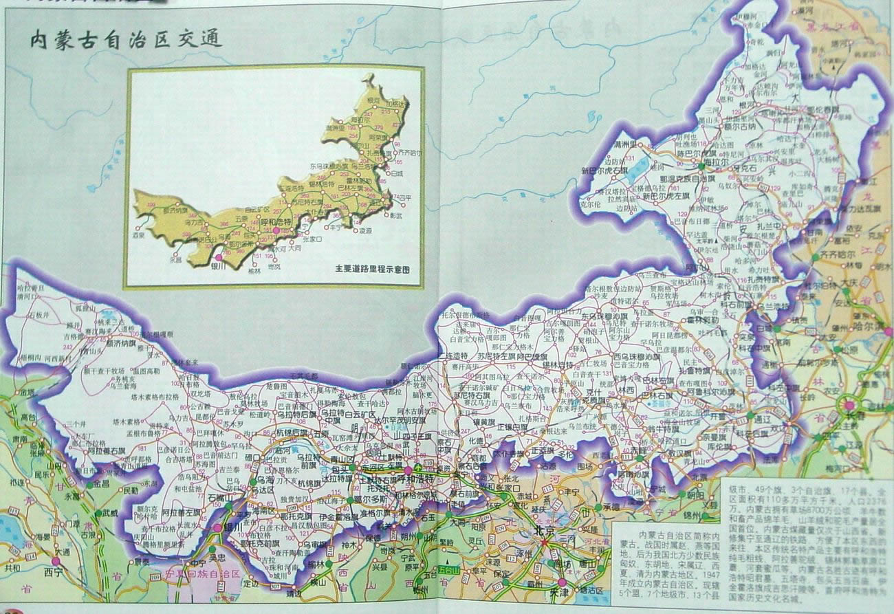 內蒙古已形成了以首府呼和浩特市為中心的鐵路、公路、民航組成的綜合交通運輸網(wǎng)絡。主要鐵路干線有京包線、京通線、包蘭線、濱洲線、集二線;由于該區(qū)城市少而分散,地勢平坦,因此適宜發(fā)展公路交通。公路網(wǎng)以國道為骨干,干支線相結合,溝通各盟市旗縣的交通網(wǎng)絡.....