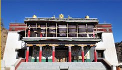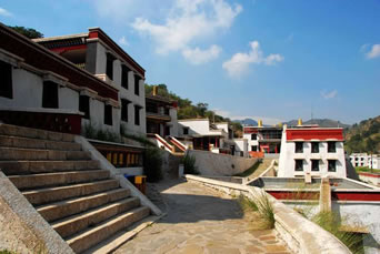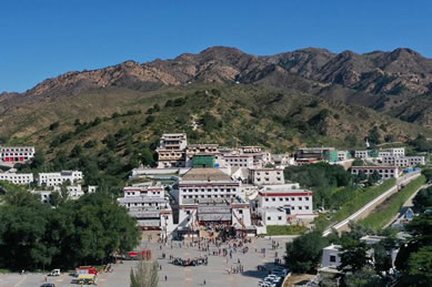 現(xiàn)存六大經(jīng)堂為蘇古沁殿、洞科爾殿、卻伊日殿(顯教經(jīng)堂)、當(dāng)圪希德殿、阿會(huì)殿(密宗經(jīng)堂)、日木倫殿(菩提道學(xué)經(jīng)堂)等。蘇古沁殿為全寺集會(huì)誦經(jīng)之所。這些殿宇規(guī)模宏大,均為典型的藏式建筑群。殿內(nèi)塑像、壁畫、唐卡(卷軸佛畫)俱全,各殿各有特色,或立高達(dá)十米的釋迦牟尼銅像,或供高達(dá)九米的黃教始祖宗喀巴銅像,或護(hù)法金剛像,或供奉白度母和綠度母塑像等。三座活佛府邸在阿會(huì)殿的南面,其中洞科爾活佛府規(guī)模宏大,為第二世活佛熱西尼瑪于乾隆四十九年(公元1784年)所建。左右是接待多倫諾爾匯宗寺甘珠爾瓦呼圖克圖和章嘉國師而建造的兩座府邸。