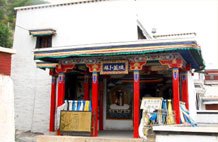 原名努尼殿,是供僧人靜坐休持的殿,用于喇嘛們以逐漸減少飲食,靜坐默誦,力圖不食不語的修行方式去解脫超度眾生靈。后來毀于文革動(dòng)亂。2003年國家撥款在遺址上恢復(fù)并擴(kuò)建此殿,2005年9月開始對外開放,全殿上下兩層,一樓為佛堂,供有千手千眼觀音像、六世班禪大師、宗喀巴大師像,正中供奉的三世佛為銅鑄鍍金佛像。墻上所繪壁畫是藏傳佛教九大佛寺壁畫。