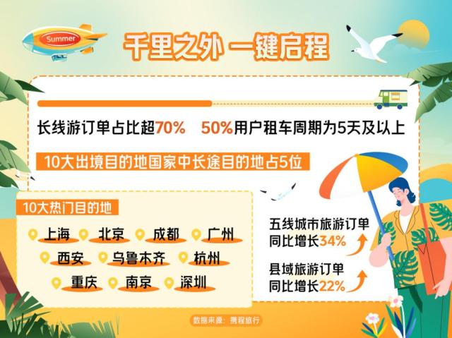 從預(yù)訂數(shù)據(jù)看,上海、北京、成都、廣州、西安、烏魯木齊、杭州、重慶、南京、深圳是暑期國(guó)內(nèi)十大熱門旅游城市。同時(shí),五線城市及縣域等下沉市場(chǎng)依然表現(xiàn)活躍。暑假期間,五線城市旅游訂單同比增長(zhǎng)34%,縣域旅游訂單同比增長(zhǎng)22%,均高于一線及新一線城市增速。前十大熱門縣域旅游目的地中,伊犁州成為大贏家,有伊寧市、新源縣、布爾津、特克斯等四地入選。