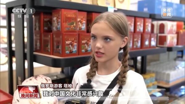 俄羅斯游客塔婭:我對中國文化非常感興趣,中國的文字、服飾、習俗都很有意思。(來源:央視新聞)