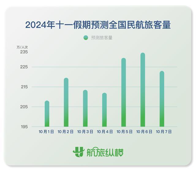 今年國慶旺季民航繼續(xù)呈“量升價跌”趨勢。據(jù)民航出行服務(wù)平臺“航旅縱橫”近日發(fā)布的報告顯示,2024年國慶假期期間(10月1日至10月7日)全國民航旅客量預(yù)計將超1565萬人次,日均旅客運輸量達(dá)223萬人次,同比2023年國慶假期增長7%,較2019年同期增長19%。