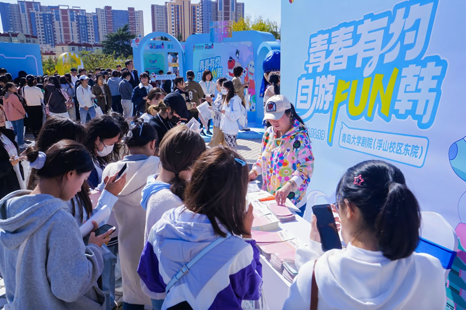 為促進大學生對韓國文化的喜愛和了解,吸引更多的年輕人訪問韓國,韓國旅游發(fā)展局于10.19日在青島大學舉辦“山東省大學生韓流慶典”,本次慶典分為“第十五屆山東省大學生k-pop大賽”和“青春有約,自游FUN韓”文化體驗兩個部分,共吸引山東省內20所大學學生參與。