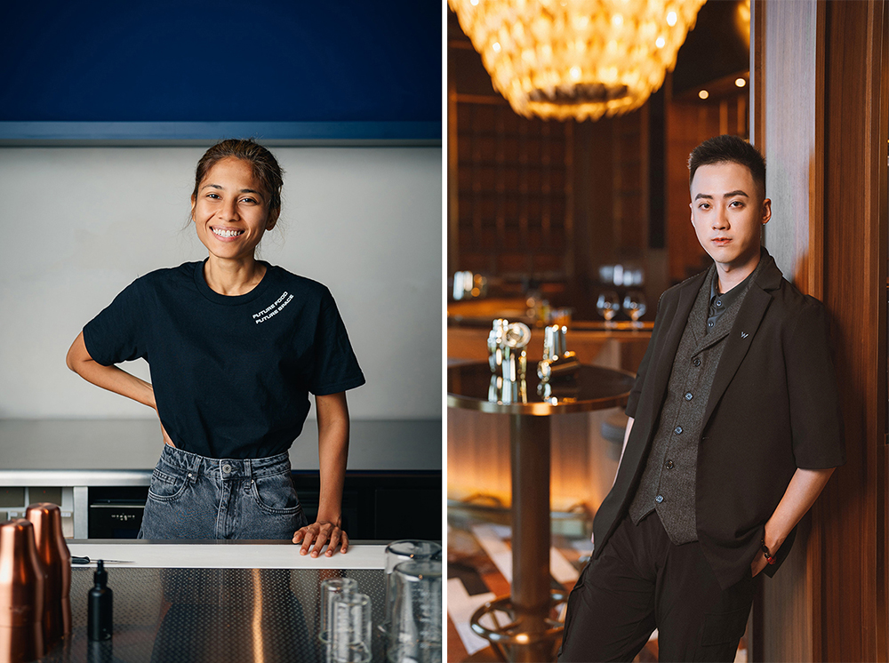 Sasha (左) 是Fura 的合伙人及調(diào)酒師,她一向追尋以創(chuàng)新的方式融合各種食材,制作出風(fēng)味獨(dú)特又環(huán)保的飲品。 澳門(mén)新濠影匯W酒店首席調(diào)酒師Samio (右) 獨(dú)具匠心,致力于以不同構(gòu)思設(shè)計(jì)出令人驚嘆的作品,期望每一杯飲品都能為賓客帶來(lái)難忘的體驗(yàn)。