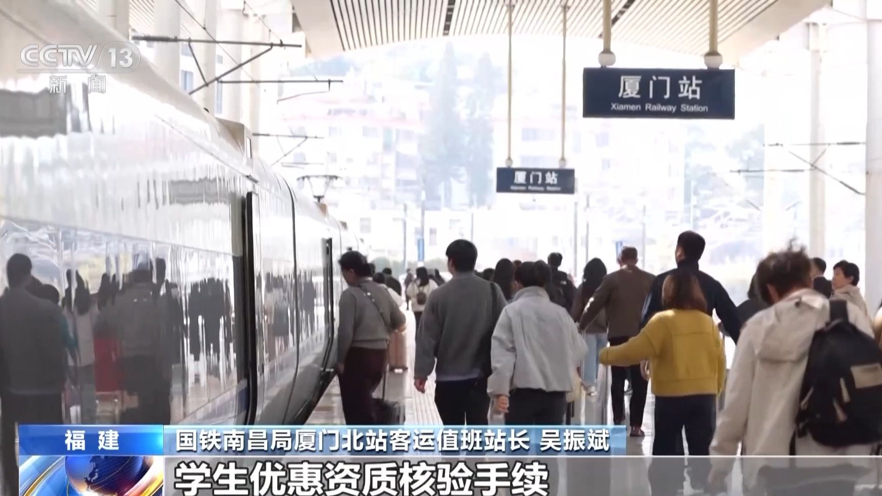 國(guó)鐵南昌局廈門北站客運(yùn)值班站長(zhǎng) 吳振斌:現(xiàn)在中國(guó)高等教育學(xué)生信息網(wǎng)和鐵路12306系統(tǒng)已實(shí)現(xiàn)信息對(duì)接,學(xué)生旅客每學(xué)年乘車前可通過(guò)鐵路12306App在線辦理學(xué)生優(yōu)惠資質(zhì)核驗(yàn)手續(xù)。