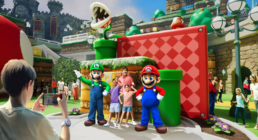 項(xiàng)目由五大官方主題宇宙聯(lián)動(dòng),從踏入樂(lè)園中央的 “星際之光廣場(chǎng)(Celestial Park)” 開(kāi)始,游客將穿越由發(fā)光步道串聯(lián)的五大主題世界,每一處均由環(huán)球影業(yè)與頂級(jí)IP聯(lián)合打造:第一個(gè)超級(jí)任天堂世界(Super Nintendo World)由任天堂(Nintendo)工作室操刀, 作為北美首個(gè)、全球最大的任天堂主題區(qū),游客將佩戴 “能量手環(huán)(Power-Up Band)” 進(jìn)入1:1還原的蘑菇王國(guó)。核心設(shè)施 “馬里奧卡丁車:庫(kù)巴的挑戰(zhàn)(Mario Kart: Bowser’s Challenge)” 通過(guò)AR眼鏡與動(dòng)態(tài)軌道結(jié)合,讓玩家在虛實(shí)交織的賽道上發(fā)射虛擬龜殼;家庭向的 “耀西的冒險(xiǎn)騎行(Yoshi’s Adventure Ride)” 則穿越彩虹賽道與食人花叢林,車載攝像頭自動(dòng)生成動(dòng)態(tài)紀(jì)念照片。