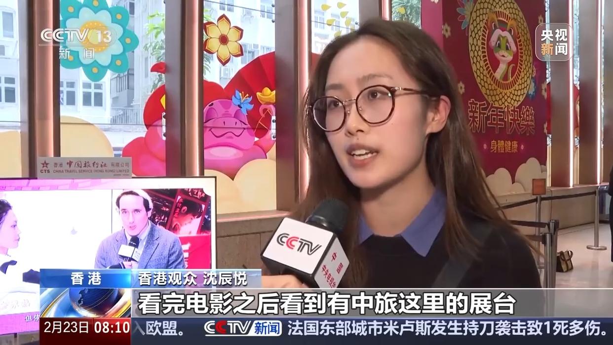 香港觀眾沈辰悅:看完電影之后看到有中旅這里的展臺(tái),然后我們也來了解一下,希望之后能夠去到內(nèi)地旅游。