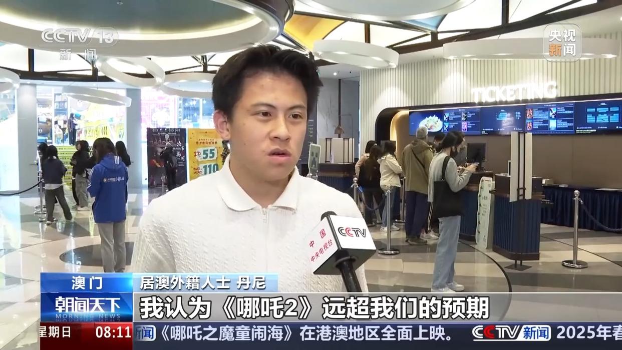 居澳外籍人士 丹尼:我認(rèn)為《哪吒2》遠(yuǎn)超我們的預(yù)期,它有很深遠(yuǎn)的文化內(nèi)涵,看完這部電影,讓我很想去中國(guó)內(nèi)地去旅行,因?yàn)樵谟捌锍尸F(xiàn)出來了很吸引人的美食和文化。(來源:央視新聞)