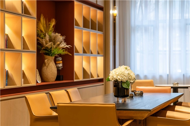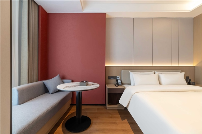 酒店共設125間豪華客房,涵蓋高級房、行政房、親子房及行政套房等多種房型。設計以“海棠紅”與“寶石紅”為主色調,融合現(xiàn)代雅致與地域文化元素,營造淡泊素雅的藝術氛圍?头颗鋫渲悄苷Z音助手、智能門鎖、燈光控制系統(tǒng)等科技設施,打造沉浸式智慧旅居空間。公共區(qū)域還設有大堂吧、書吧、茶室、中餐廳、會議室、健身房、洗衣房等配套設施,滿足賓客的多元需求。