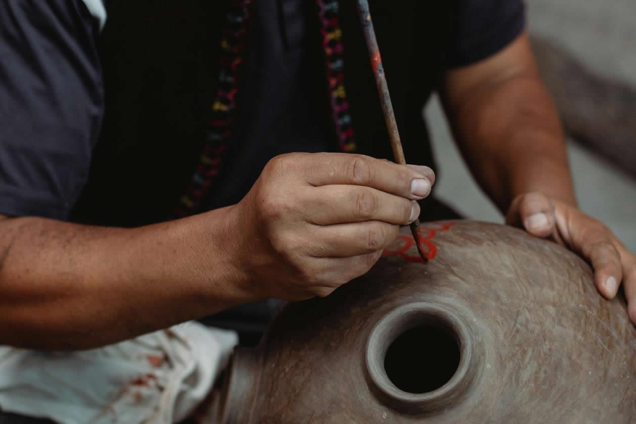 響應(yīng)國(guó)家“非遺活化”與云南“文旅融合”戰(zhàn)略,云南共享國(guó)際旅行創(chuàng)新推出了“手藝+旅行+社區(qū)”的沉浸式傳承體驗(yàn)。在大理周城的老院落里,跟著非遺傳承人,用板藍(lán)根發(fā)酵染缸,親手捆扎出蝴蝶紋樣,體驗(yàn)"拆盲盒"般的拆線時(shí)刻,看藍(lán)白圖案在水中綻放,帶走獨(dú)一無(wú)二的扎染方巾,把大理的云紋穿在身上。在西雙版納的吊腳樓下,用千年古法制作慢輪傣陶,感受陶土在指尖流動(dòng)的溫,用貝葉經(jīng)文拓印裝飾,燒制出帶民族密碼的茶器。