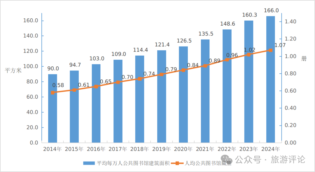 2024年末,全國(guó)平均每萬(wàn)人公共圖書(shū)館建筑面積166平方米,比上年末增加5.7平方米;全國(guó)人均圖書(shū)藏量1.07冊(cè),比上年末增加0.05冊(cè);全年全國(guó)人均購(gòu)書(shū)費(fèi)1.5元,與上年基本持平!