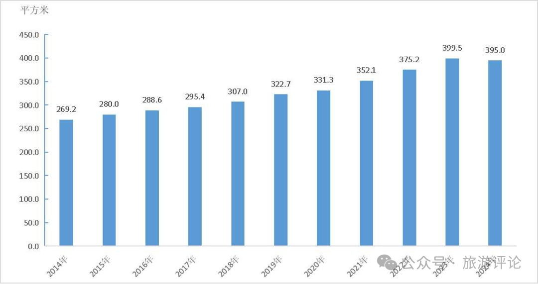 2014-2024年全國(guó)平均每萬(wàn)人群眾文化設(shè)施建筑面積