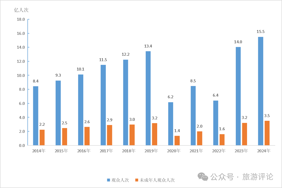 2014—2024年全國(guó)文物機(jī)構(gòu)接待觀眾人次及未成年人觀眾人次