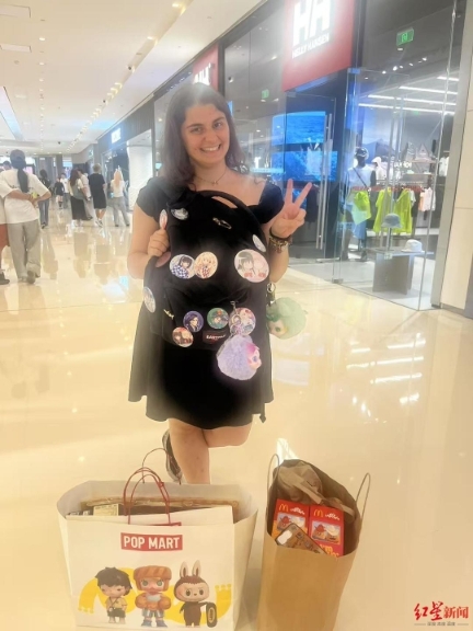 同樣來成都玩的,還有27歲的意大利女孩瑪?shù)倌龋∕artina)。6月25日下午,瑪?shù)倌日诔啥嫉囊患遗菖莠斕氐赀x購(gòu)。看到琳瑯滿目的潮流玩具,瑪?shù)倌纫贿M(jìn)去就是半小時(shí)以上,足足選了一大袋才出來,“在意大利,泡泡瑪特的店鋪不多,商品品種也沒有這么齊全。”