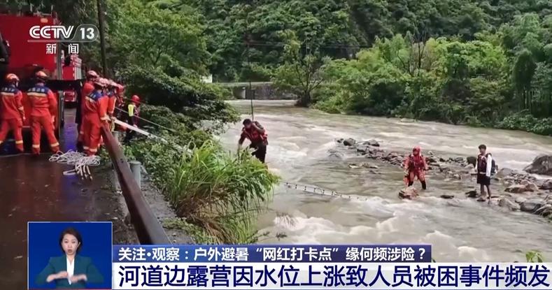 浙江寧波市消防救援支隊余盈:游客在水邊玩耍,對上游山洪的下降往往是聽不清、看不見的。提醒大家汛期不要在河道邊或者是干涸的河床上搭建營地,應(yīng)該盡量選擇地勢高、地面平坦堅固、背風(fēng)的地方扎營。