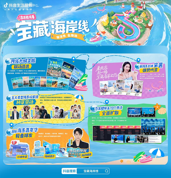 當(dāng)海浪與城市共鳴,當(dāng)流量與體驗(yàn)共振,抖音生活服務(wù)聯(lián)合四省九城打造了一場「寶藏海岸線」文旅盛宴,交出了一份令人矚目的答卷。從政府到商家,從明星到達(dá)人,從線上種草到線下狂歡,這場以“海”為核的超級IP,不僅激活了海岸經(jīng)濟(jì)的新動能,更重新定義了夏季海濱生活的無限可能。