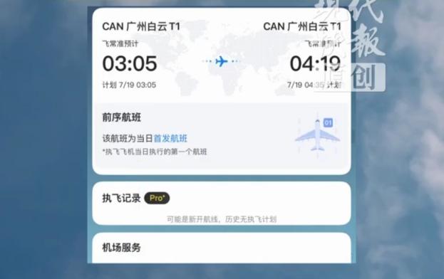 民航業(yè)內人士表示:其實經常有這種試飛航班。不過近期有臺風來臨,7月19日白云機場天氣不佳,平臺“賞月航班”的信息標注有點奇怪。