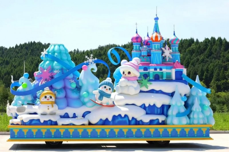 “冰雪綺夢花車”,巧妙融合了伊春作為“紅松故鄉(xiāng)”的生態(tài)特色與對俄開放的地緣優(yōu)勢。銀裝素裹的紅松林展現(xiàn)北國冰雪魅力,俄羅斯城堡造型呼應(yīng)伊春作為中俄邊境城市的開放姿態(tài)。雪人點(diǎn)綴其間營造歡樂氛圍,底部藍(lán)色水系裝飾象征黑龍江流域的聯(lián)通作用;ㄜ囃ㄟ^冰雪童話場景,既展示了伊春冬季旅游的獨(dú)特吸引力,更傳遞出“以冰雪為媒,促開放合作”的發(fā)展理念,生動詮釋了伊春立足生態(tài)優(yōu)勢、深化對外合作、推動高質(zhì)量發(fā)展的戰(zhàn)略方向,誠邀八方賓客共赴冰雪之約、共享開放機(jī)遇。