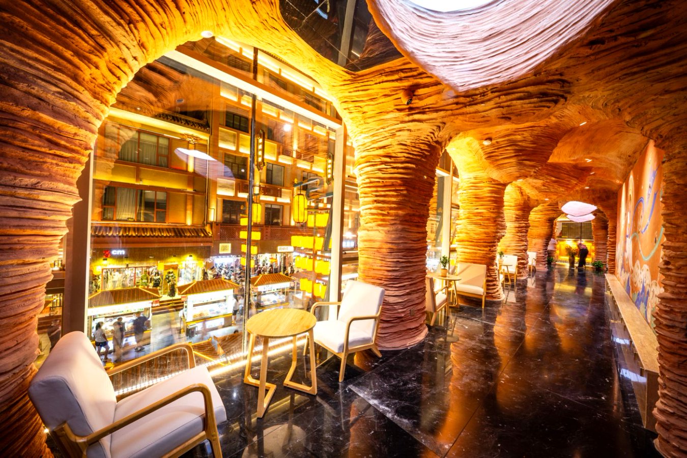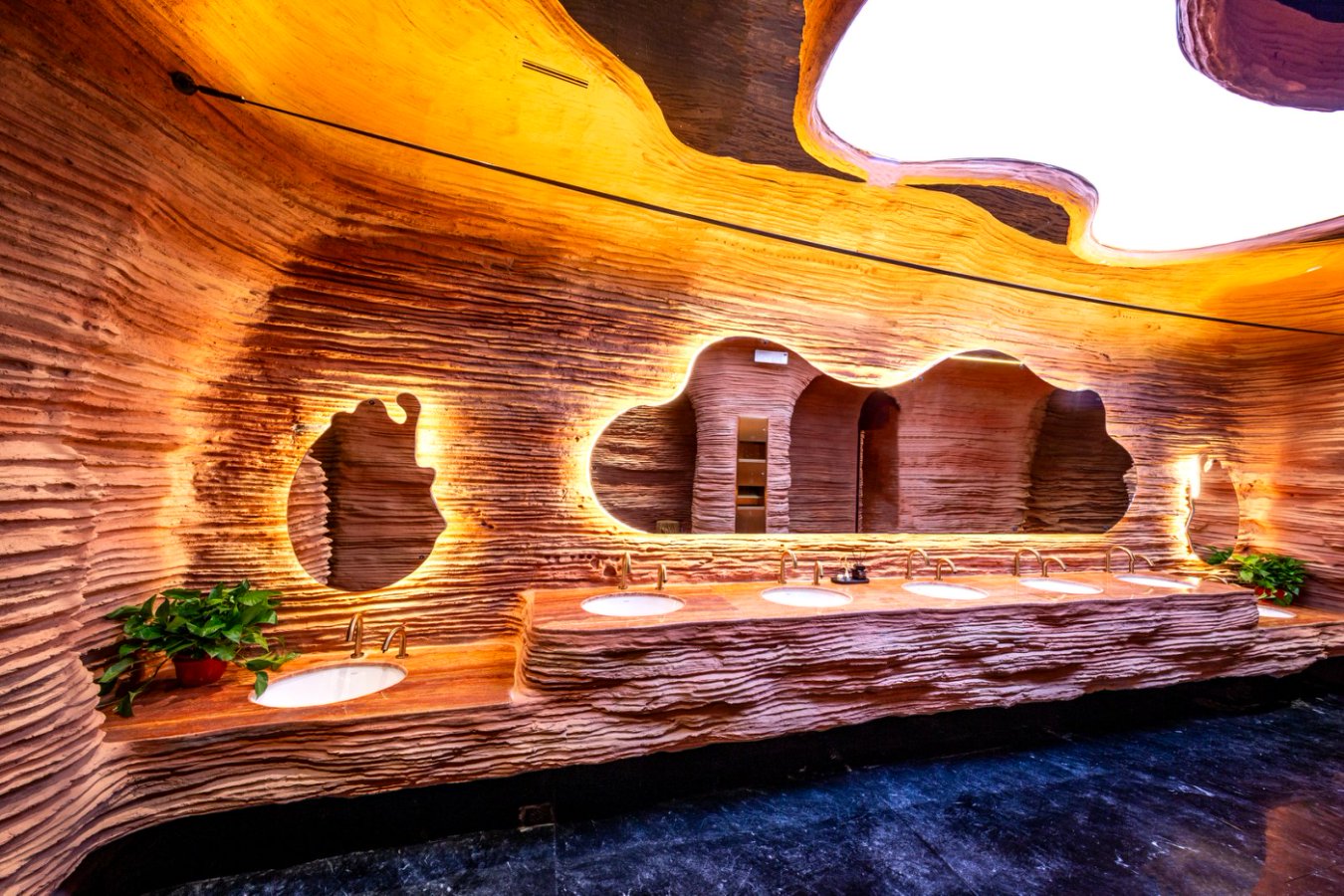 據(jù)了解,該項(xiàng)目對(duì)敦煌夜市“八景樓”進(jìn)行功能再造,融合敦煌文化基因:一層以“莫高至善”為主題,二層則呈現(xiàn)“雅丹秘境”,營(yíng)造雄渾奇幻的空間意境。步入其中,便能感受到敦煌文化與九牧衛(wèi)浴產(chǎn)品的完美交融,一位來自北京的游客表示:“這和我印象中的公廁完全不一樣,升級(jí)后的超白玻幕墻與毗鄰的沙州樓形成震撼的 ‘古今對(duì)話’,夜幕降臨時(shí),燈光與幕墻交相輝映,宛如一座小型藝術(shù)館。”