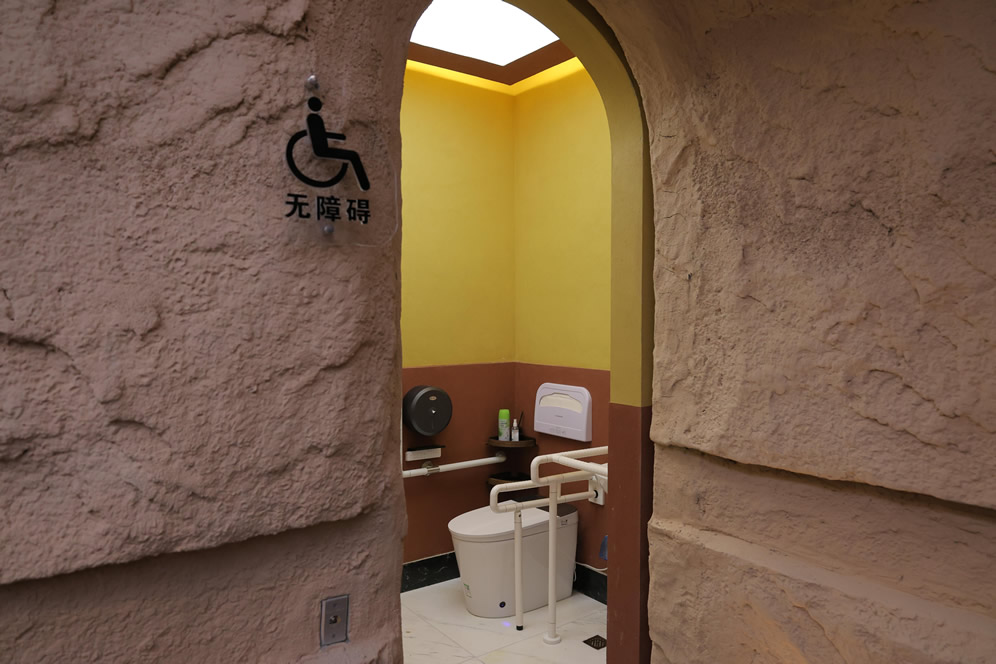 此外,九牧創(chuàng)新性地打造近千平米的“全齡友好型人文關(guān)懷樞紐”:母嬰群體專享獨(dú)立哺育室,配備抗菌護(hù)理臺(tái)、兒童安全座椅及自清潔穹頂系統(tǒng),打造潔凈溫馨的親子空間;長(zhǎng)者及殘障人士無障礙專區(qū),設(shè)置低位感應(yīng)洗手池、防滑安全扶手及智能語音導(dǎo)航,實(shí)現(xiàn)自主無憂通行;還可通過潮汐衛(wèi)生間動(dòng)態(tài)調(diào)節(jié)廁位資源,解決代際照護(hù)如廁難題;全齡游客共享多功能服務(wù)島——休憩區(qū)配備茶飲自助機(jī)、行李寄存柜及文化展陳,滿足從嬰幼兒到銀發(fā)族的多元需求。