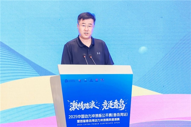 發(fā)布會上,萊陽市人民政府副市長李誠首先發(fā)表致辭,對蒞臨現(xiàn)場的各位領導、嘉賓及媒體朋友表達了誠摯的歡迎與感謝。他強調,動力沖浪板運動作為時尚、刺激與科技完美融合的新興水上項目,近年來在全球范圍內迅速崛起,深受廣大青年及戶外運動愛好者的青睞。中國動力沖浪板公開賽作為國內頂級賽事,歷經多屆積淀,已擁有深厚的辦賽底蘊與廣泛的社會影響力。香島灣站的設立及首屆香島灣動力沖浪精英邀請賽的創(chuàng)辦,旨在積極響應國家全民健身戰(zhàn)略,推動水上運動的普及與提升,深化體育與旅游的融合發(fā)展,進一步彰顯香島灣地區(qū)的魅力與知名度。