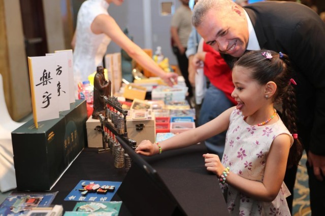 6月12日,一名女孩在埃及開羅舉辦的“茶和天下”尼羅雅集活動(dòng)現(xiàn)場體驗(yàn)“遇見孔子”非遺文創(chuàng)產(chǎn)品。新華社記者 隋先凱 攝