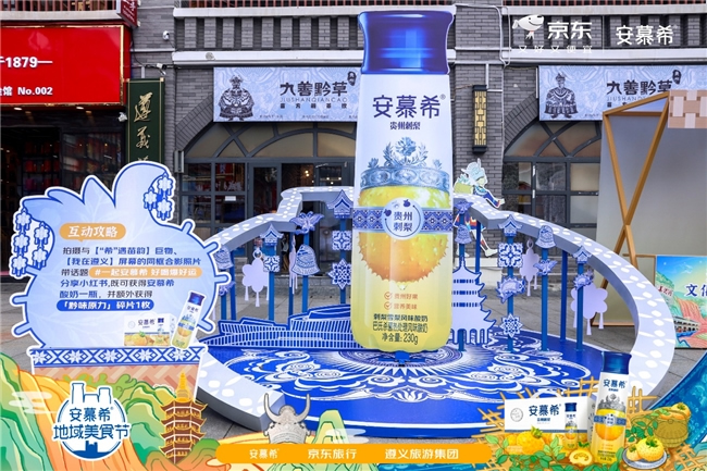 2025年9月23日至28日,隨著安慕希地域美食節(jié)第四站在貴州遵義1935文化街區(qū)圓滿落幕,京東旅行與安慕希攜手打造的"四城美味與文化盛宴"迎來收官。本次活動以新上市的安慕希貴州刺梨酸奶為核心,聯(lián)合遵義旅游集團,深度融合苗族蠟染、竹編非遺技藝,通過地域美食定制、文化體驗與品牌發(fā)布等多維創(chuàng)新,為現(xiàn)代消費者呈現(xiàn)一場味覺與文化的深度對話,標(biāo)志著文旅跨界營銷進(jìn)入"地域深耕+文化再生"的新階段。