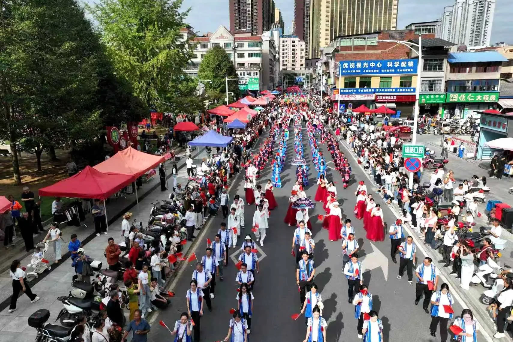 假期間,貴州黔南“秋飲穿越酒”獨山花燈暨“村戲”展演活動在獨山主城區(qū)舉行,活動以“巡游+展演+市集”為主線,匯集重慶、廣西、云南等多地表演者,組織27支巡游隊伍開展巡演,沿途呈現舞獅、“踩燈”及現代花燈歌舞,吸引群眾駐足互動。