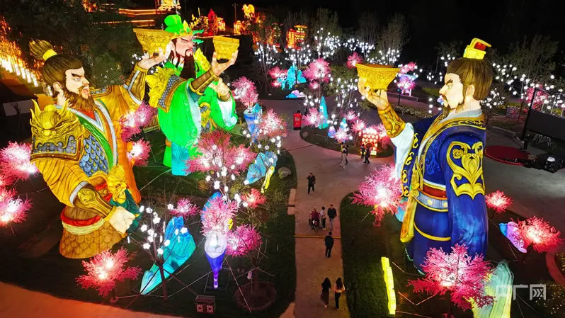 “快看,涿水女神在眨眼!”孩童驚呼引來眾人駐足。運(yùn)用動態(tài)LED技術(shù),絹紗背后的女神眼眸流轉(zhuǎn),讓古老傳說瞬間鮮活。12米的“桃園三結(jié)義”燈組搭配實(shí)景情景劇,讓“三國演義從涿州開篇”的故事跳出書本。盧植、酈道元等先賢燈廊下,游客們借著暖光,細(xì)細(xì)品讀他們的生平,風(fēng)過廊下,燈影輕搖,宛如歷史在耳邊回響。