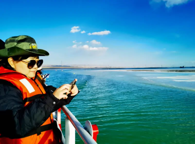 10月14日,由中共海西州委宣傳部主辦、西海都市報社承辦的“紅杞風(fēng)光別樣美 ”活動,走進(jìn)海西蒙古族藏族自治州烏蘭縣,研學(xué)團隊來到茶卡鹽湖,乘坐游船觀光,湖面上駛來的大型運鹽船讓外省記者及學(xué)生不由感嘆:沒想到“天空之鏡”還有另外一種獨特景致。湖面上駛來的大型運鹽船吸引了研學(xué)團隊成員的目光。采鹽船正在鹵水中作業(yè),發(fā)出低沉的轟鳴,空氣中彌漫著咸潤的氣息。研學(xué)的同學(xué)通過實地觀察鹵水的蒸發(fā)、結(jié)晶過程,將課本上的地理、化學(xué)知識,與這片壯麗的現(xiàn)實場景融會貫通。
