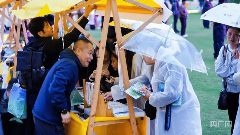 “饒”有好物非遺展與線下沉浸式互動(dòng)體驗(yàn)區(qū),不少游客前往打卡(央廣網(wǎng)記者 周蓓 攝)